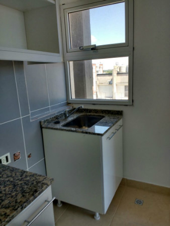 A estrenar, excelente construcción, luminoso, ventilación cruzada, cerramientos aluminio, cocina completa con alacenas y bajo mesada, living comedor amplio, baño y un dormitorio con amplio placard.