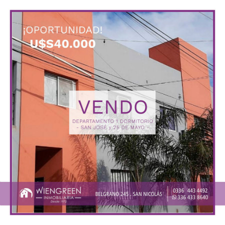 Living-Comedor-Cocina / Baño / Ante Baño / Balcón y Espacio Vehicular. en Primer piso. U$S 40.000 San José y 25 de Mayo.
