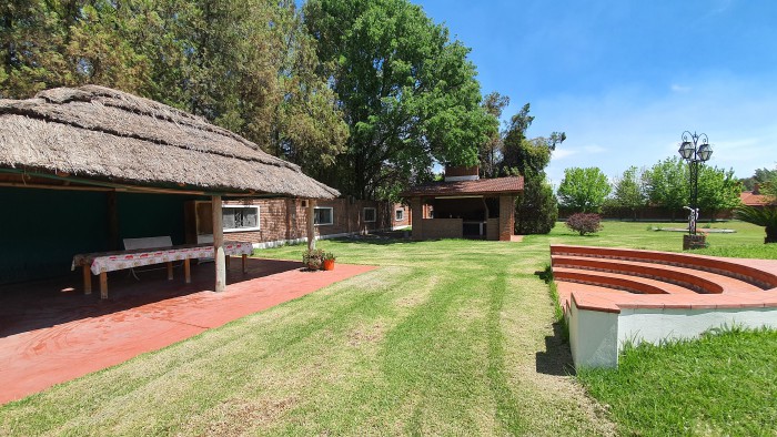 La quinta posee una pileta de 7 x 14 mas un quincho de paja un parrillero cubierto de 35m2 y una casa ( monoambiente ) con baño y cocina, además encontramos otra dependencia mas en la cual hay 2 dormitorios, living comedor cocina y un baño ( todo 60m2 ).