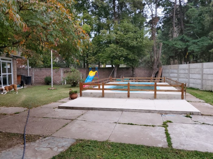 Propiedad sobre amplio terreno de 20 x 26 m. 3 dormitorios c/placares. Cocina comedor amplia, living. Parque con pieta. Hermosa forestación.