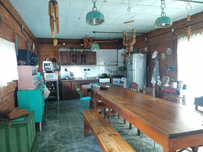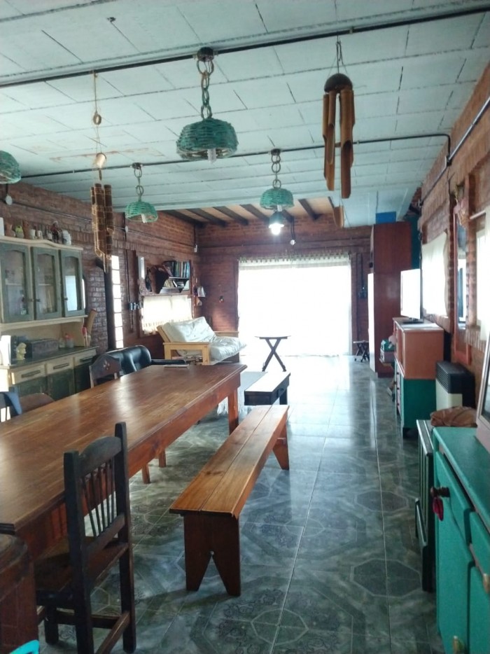 Casa en dos plantas. Planta Baja: cocina comedor grande, baño principal, patio verde con pileta. Planta Alta: 3 habitaciones, baño completo.