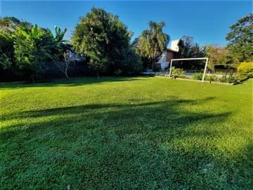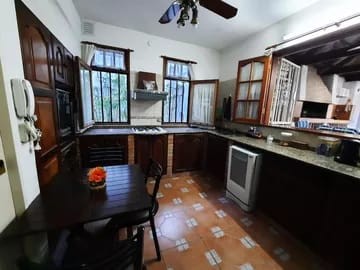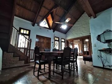 Salida vehicular secundaria a calle Los Sauces por contrafrente. Casa climatizada en todos sus ambientes, con placares en sus 3 dormitorios. Dormitorio con baño en suite en pta baja con hidromasaje. Cochera para 2 autos, techada y cerrada, con portón automatizado, 2 ventanales y lugar de guardado. Ingreso directo a sala de estar o comedor social con bow windows y doble altura. Living comedor con 4 ventanas con vitraux y doble altura Amplio toilette de recepción. Ingreso directo desde la casa a quincho cerrado con parrilla y amplias puertas balcón de vidrios repartidos que dan al jardín, para 50 personas. Habitación / dormitorio / playroom de 7x3,5 con baño completo y 2 amplias ventanas al jardín. Lavadero