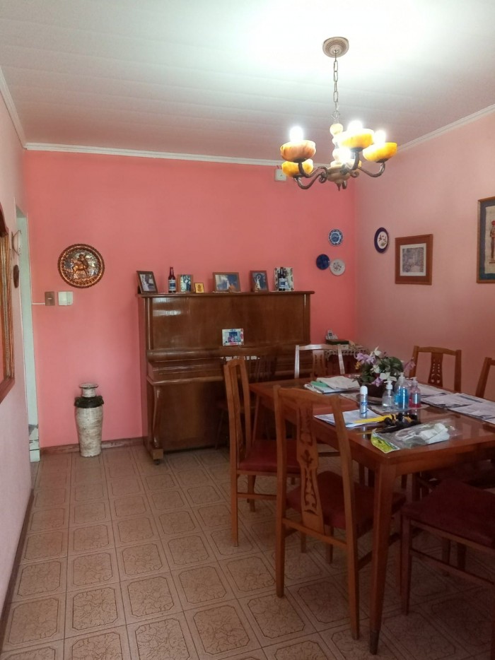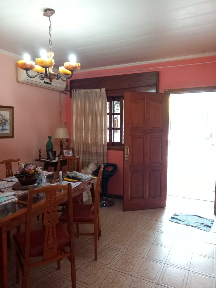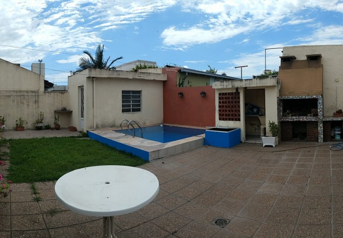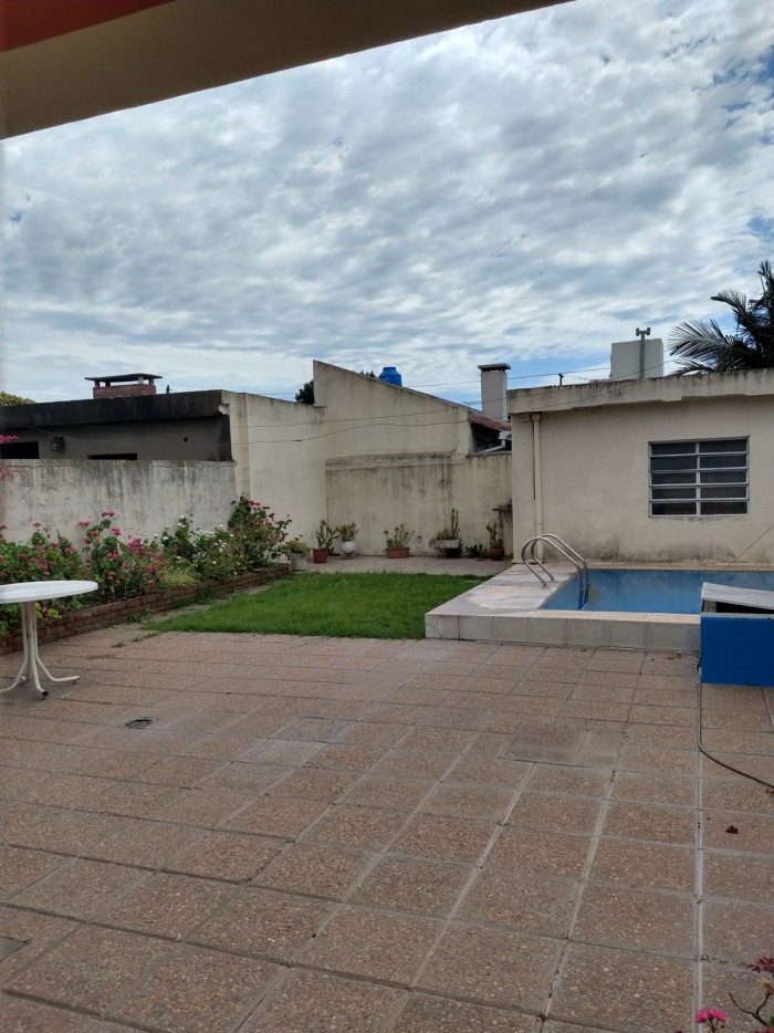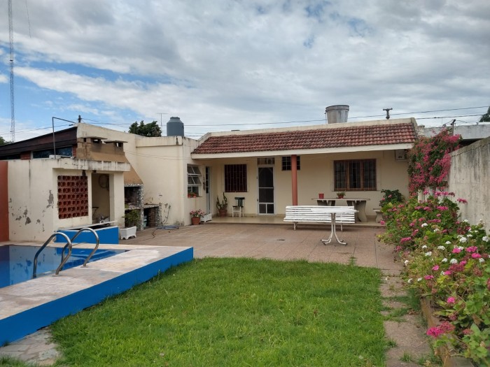 Al frente ladrillos vistos y rejas, garage. Living, cocina comedor, 3 habitaciones (una con placard y baño completo en suite), distribuidor con placard, baño completo. Patio con pileta, galería, parrillero y galpón.