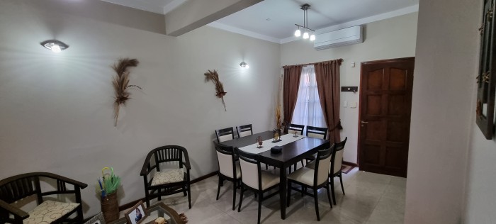 Excelente propiedad en la zona de la escuela normal. La propiedad cuenta con un jardin al frente que separa la propiedad de la linea de la vereda, logrando una mejor imagen y dejando a un lado los ruido de la calle. Al ingresar a la propiedad tenemos un living comedor, una cocina comedor 3 dormitorios, 1 baño con Garaje . En el patio tenemos el parrillero con una galería poco verde con 1 baño mas y un poco de verde.