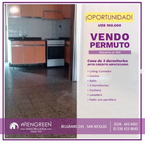 Casa de 3 Dormitorios / Living-Comedor / Cocina / Baño / Cochera / Patio con Parrillero y Lavadero.