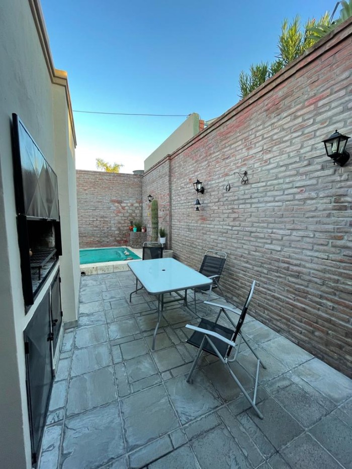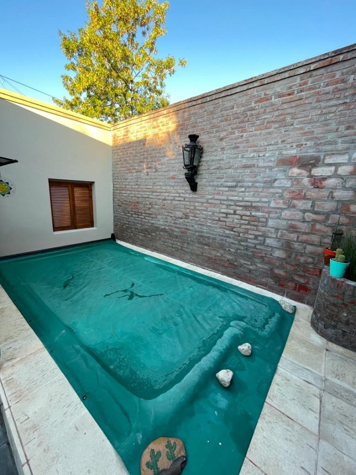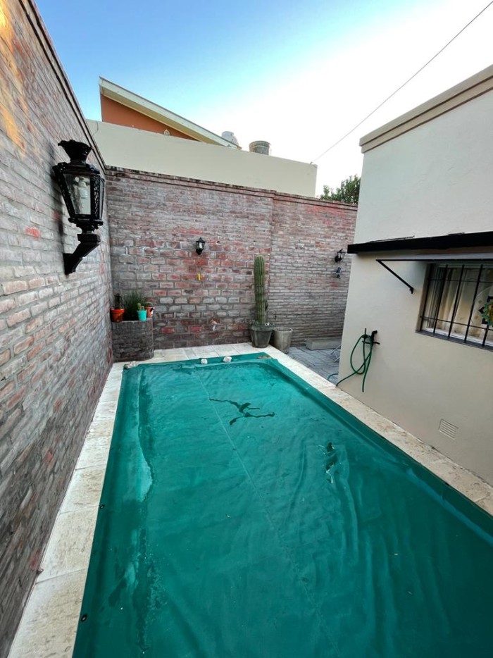 Superficie 117 m2. Cuenta con 2 dormitorios, baño, cocina-comedor, living-comedor, cochera, patio con parrillero y pileta. Muy buen estado. Posibilidad de permuta por departamento.
