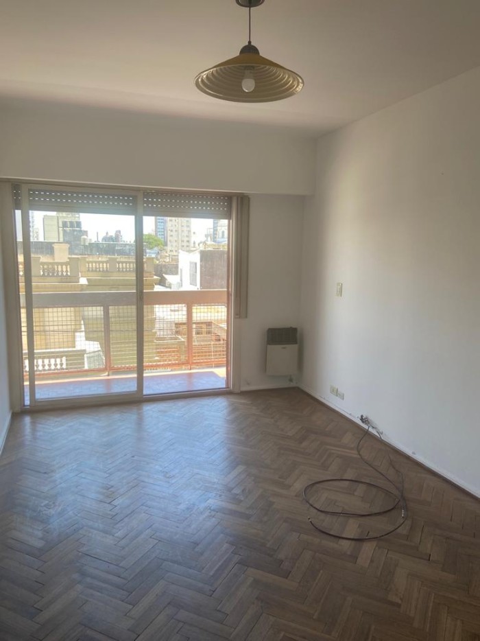 Liv-com c/ pisos de parquet a balcon, 1 dorm. c/ placard, cocina, lav. y baño.