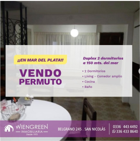VENDO O PERMUTO DUPLEX EN MAR DEL PLATA