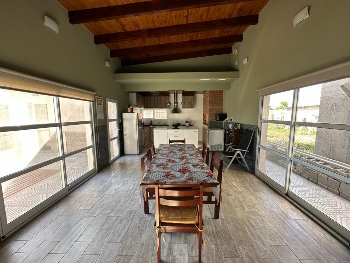 VENDE-PERMUTA casa ubicada en San Eduardo. Medidas 12 x 25, superficie total 300 m2, cubierta 121 m2. Cuenta con 2 dormitorios (1 placard), 2 baños, cocina-comedor con quincho/parrillero integrado, living, lavadero, cochera y patio. Excelente estado