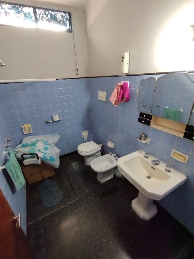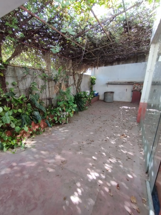 Casa de aprox 60 años de antigüedad, cochera para un auto, doble ingreso por living comedor y por pasillo de servicio que lleva al patio. Cocina comedor, living comedor, dos habitaciones de las cuales una con placard, baño , patio de invierno con cerramiento de vidrio, cocina secundaria con parrillero y deposito, lavadero con baño auxiliar, patio seco con canteros, terraza por escalera de cemento.