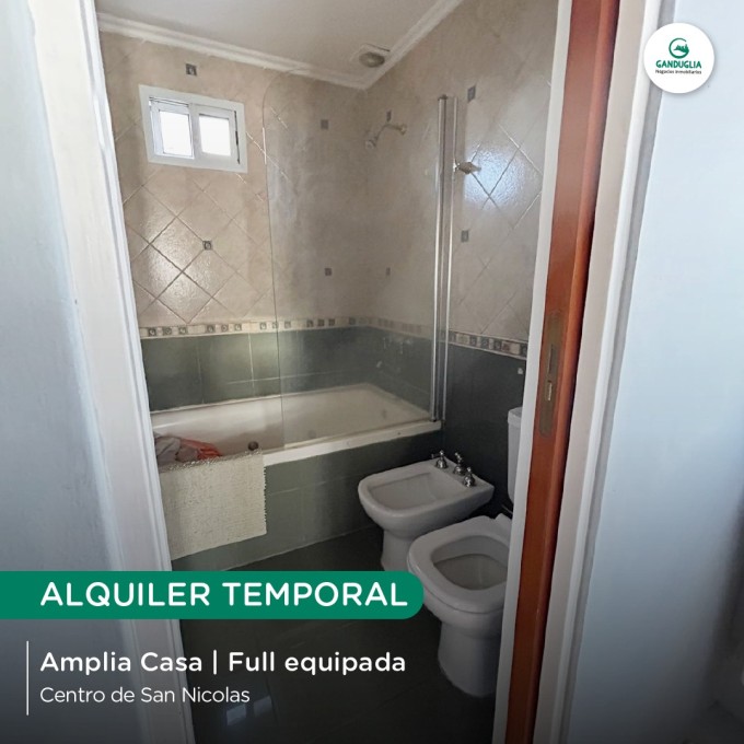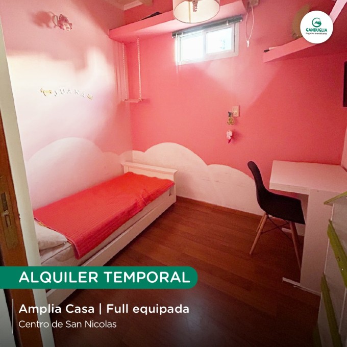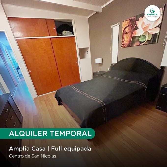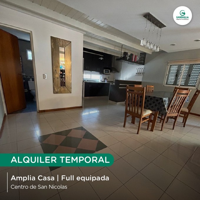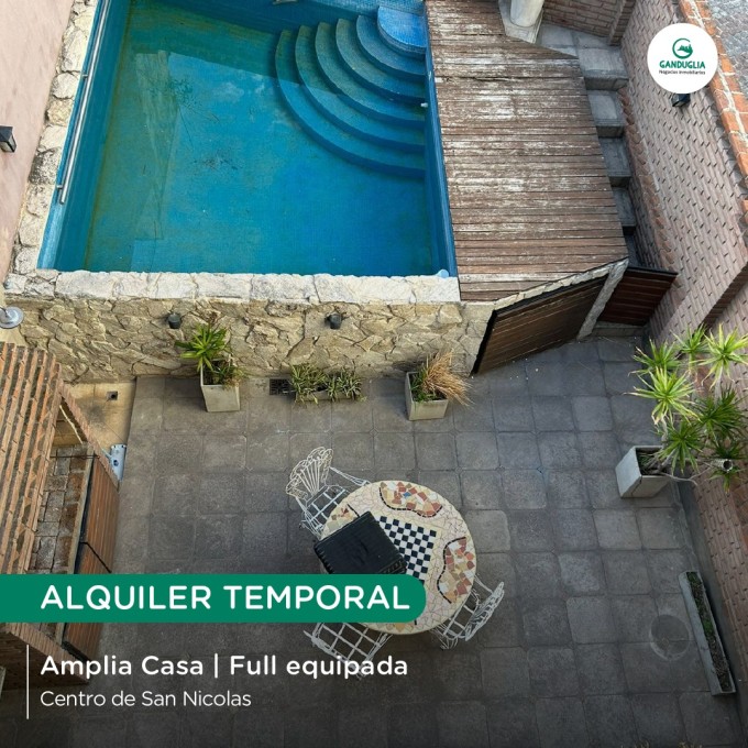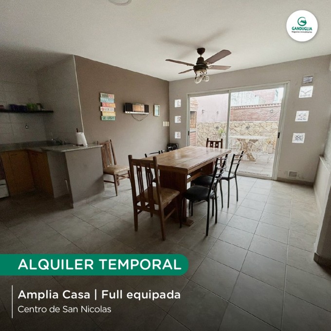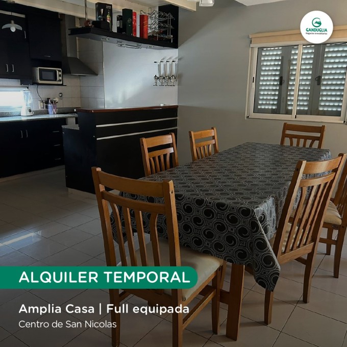AMPLIA CASA EN ALQUILER TEMPORAL Muy bien equipada | Centro de San Nicolás Características:? 3 habitaciones | Cochera | Quincho y pileta | Todos los servicios