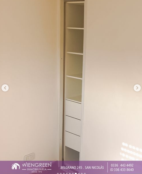 • 1 Dormitorio con placard • Cocina completa • Baño • Balcón y Cochera • Con ascensor. Piso 1