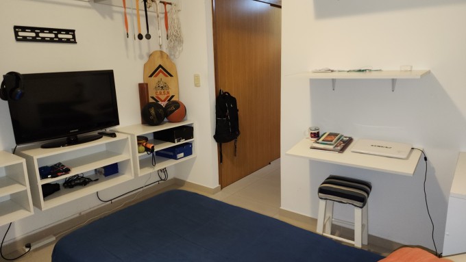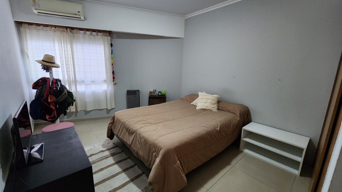 Desde el pasillo distribuidor se accede a los dormitorios, todos con placares. El dormitorio principal es en suite, lo que le agrega privacidad y confort. Además, el departamento cuenta con otros dos dormitorios y un baño completo adicional.