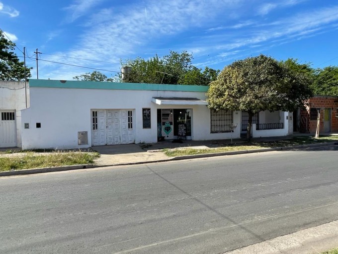 Propiedad de 3 dormitorios, patio, con garage, y salón comercial al frente.