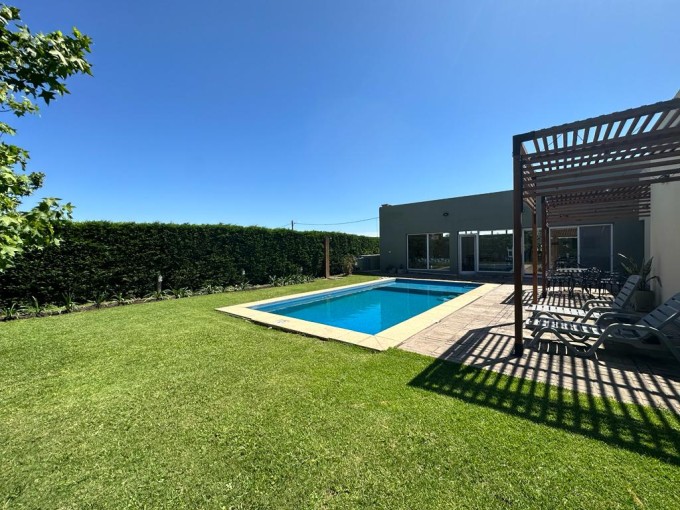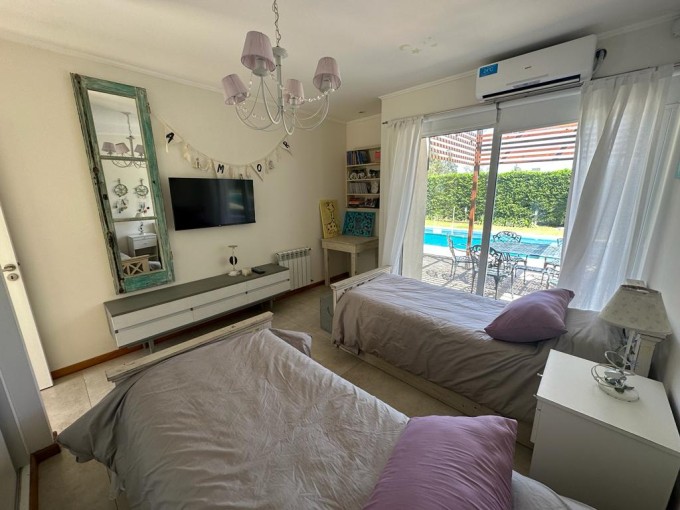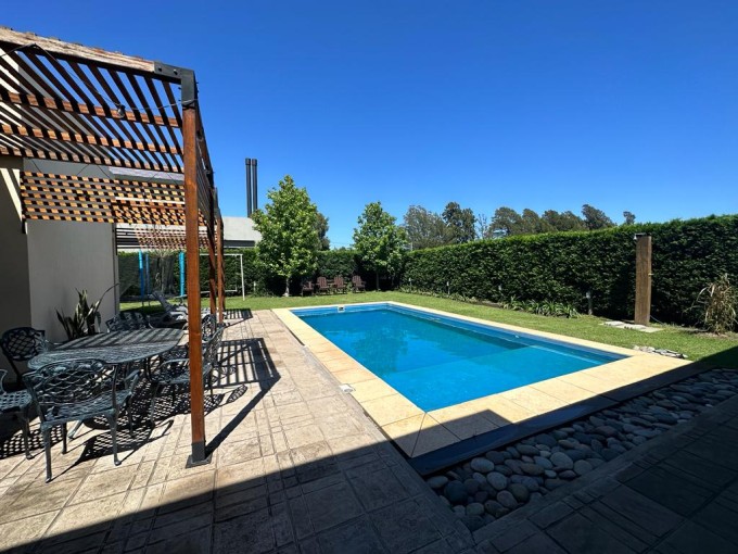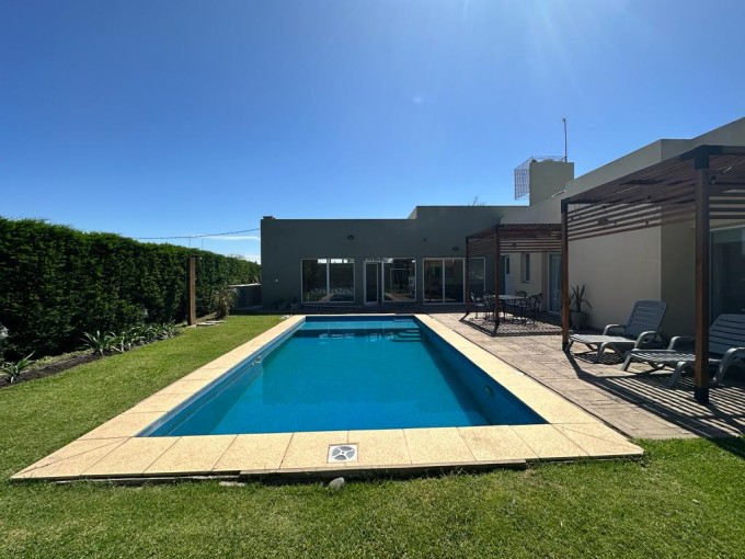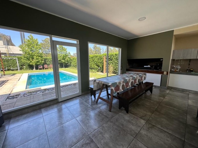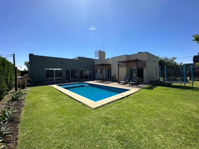 VENDE/PERMUTA hermosa propiedad. Superficie del lote 615 m2, cubierta 171 m2. Cuenta con 3 dormitorios (2 con placard), 2 baños, pasillo de distribución con placard, amplio living/comedor, cocina con barra con hermosa vista al camping, amplio quincho con parrillero, cochera y amplio patio verde con pileta. Calefacción por radiadores, pisos de porcelanato ilva, ventanales dvh y alarma. Excelente estado y hermosa zona.