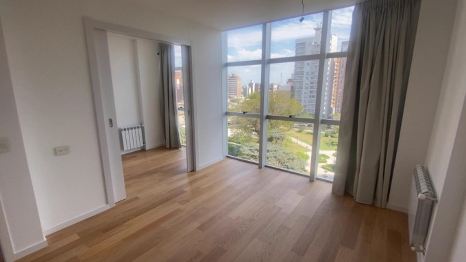 PIiso exclusivo en cuarto piso cuenta con dos habitaciones, tres baños, un amplio living comedor con ventanal al frente, cocina completa integrada e isla flotante y balcón con vista al rio.