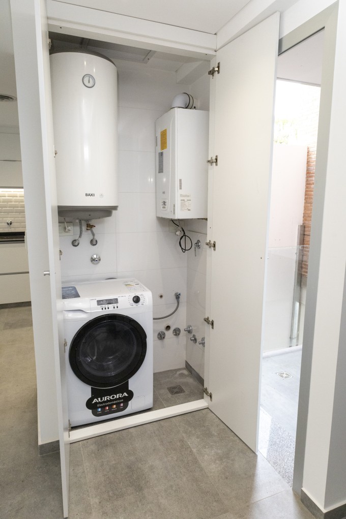 Oculto en un mueble se encuentra el lavadero.