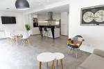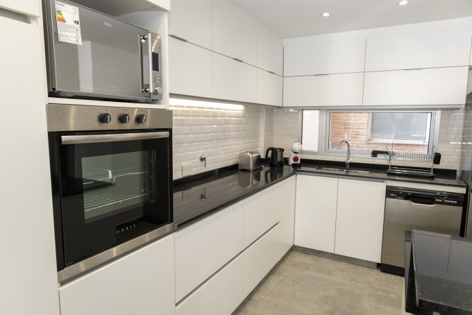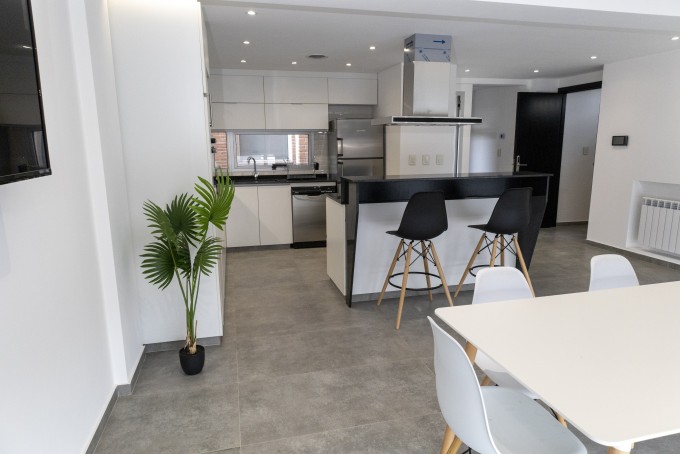 Gran ambiente de living comedor con cocina integrada a través de la isla. El sector cocina está totalmente equipado con anafe eléctrico, extractor, horno empotrado, microondas, lavavajillas, termotanque y muebles de cocina bajo mesada y alacenas. Este gran ambiente se encuentra enteramente vidriado lo que aporta mucha luminosidad y amplitud.