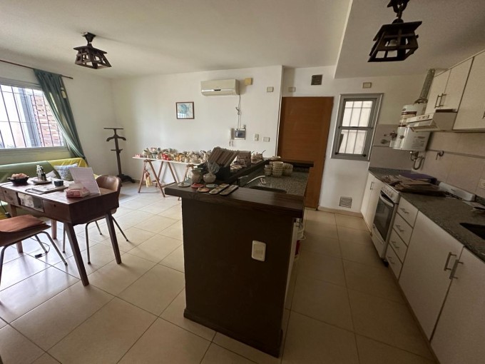 Planta baja. Superficie cubierta 30.29 m2, total 57.53 m2. Cuenta con 1 dormitorio con placard, ante baño, baño completo, cocina completa con barra, living/comedor, patio y cochera semicubierta. Portón automático. Permuta por casa. Bajas expensas. Muy buena zona.