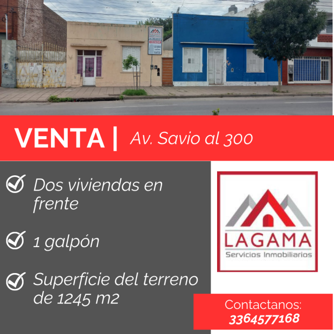 VENTA| DOS VIVIENDAS EN FRENTE + 1 GALPÓN Av. Savio al 300, San Nicolás de los Arroyos. Superficie del terreno 1245m2.