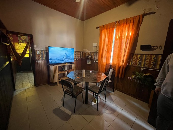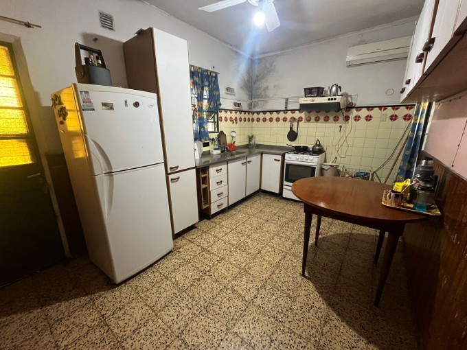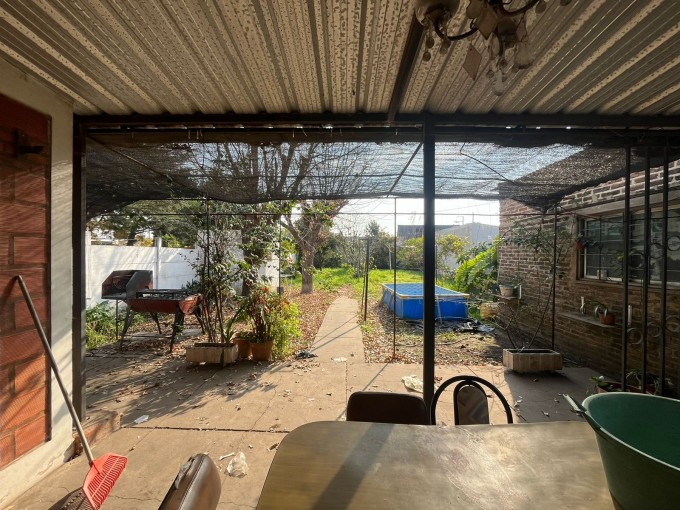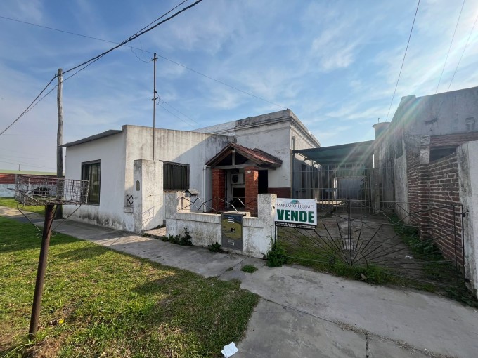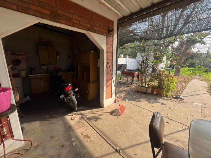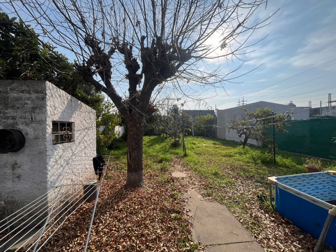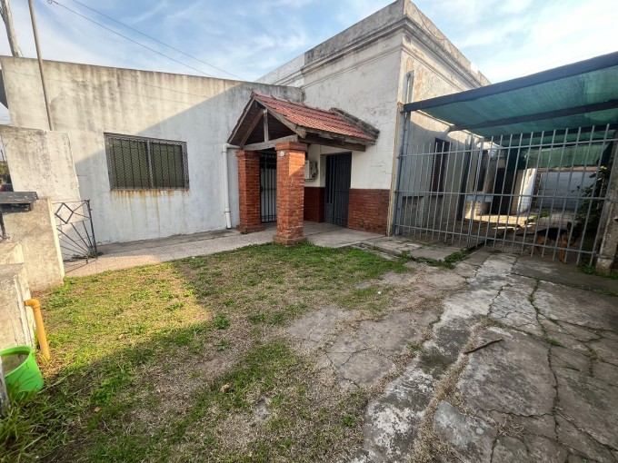 Casa de dos dormitorios, living, comedor, cocina, baño, galeria con cochera semicubierta, galeria trasera hacia el patio, amplio fondo con verde. Lavadero. Local al frente/cochera.