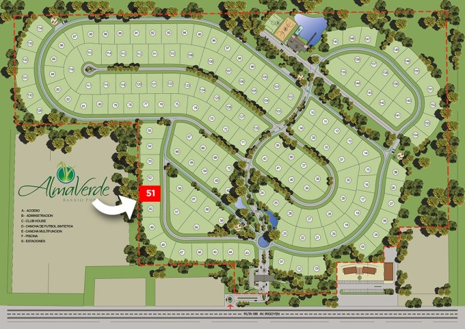 El lote 51 está ubicado sobre calle Las Violetas . Su orientación permite imaginarnos en una casa con amplios ventanales en sus dormitorios disfrutando el amanecer desde la cama.