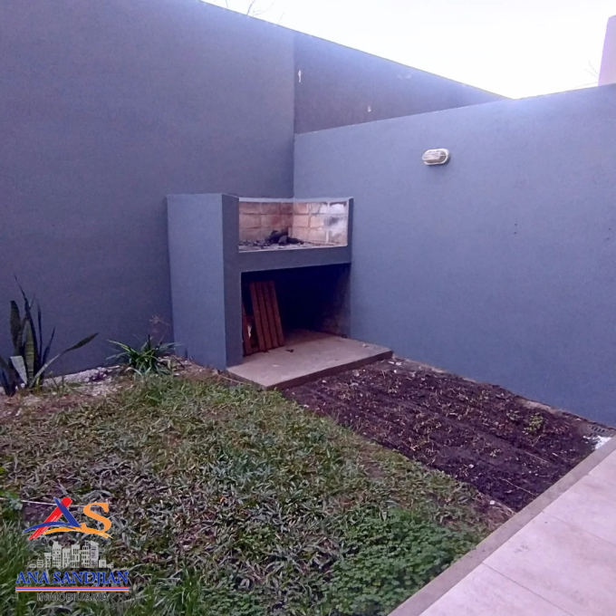 PB: jardín, garage y baño de servicio. Pa: cocina comedor integrada. 2do piso: 2 dormítorios con placares y baño. Apto credito