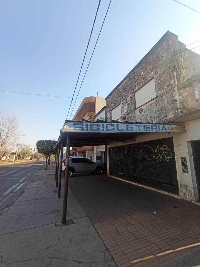 Planta Baja: Local comercial con vidriera y persiana, deposito, habitación, kitchen, baño y patio con parrillero.