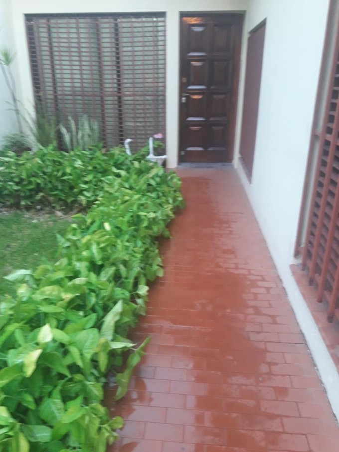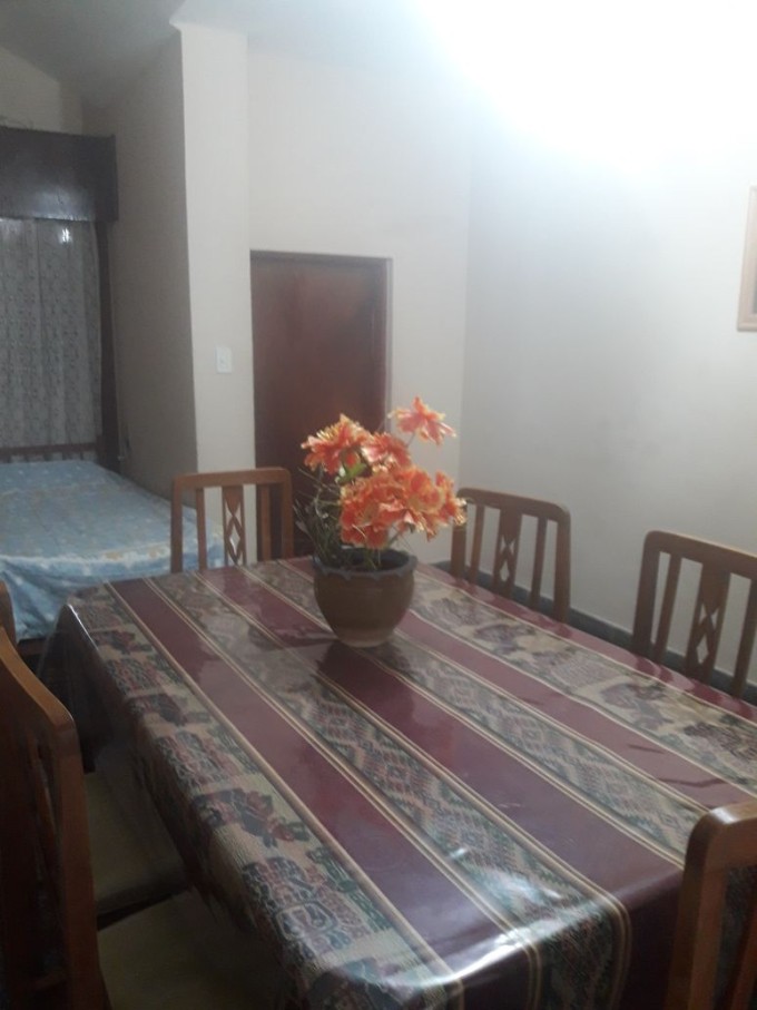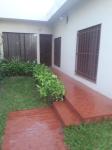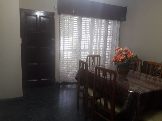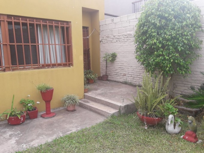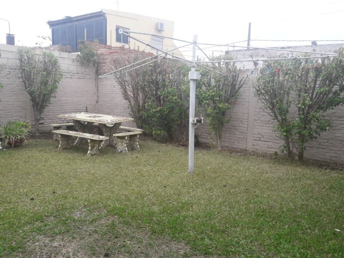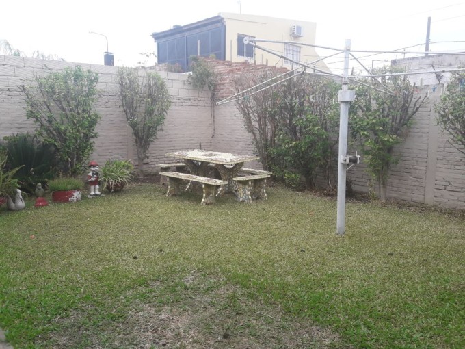 Casa de dos dormitorios con placares embutidos, living comedor, cocina, comedor diario, baño, garage para dos vehículos y patio con jardín verde.