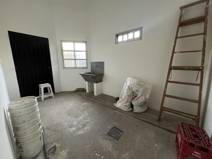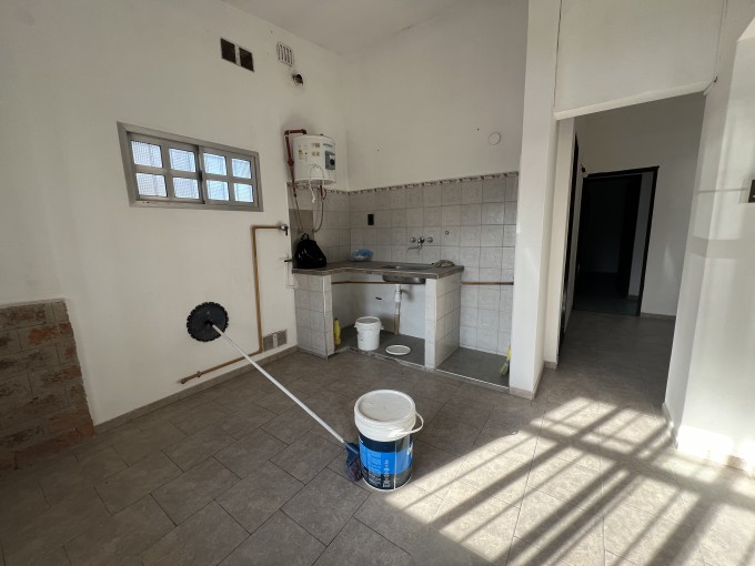 2 dorm, living, cocina comedor, baño completo instalado, galería y gran jardín.