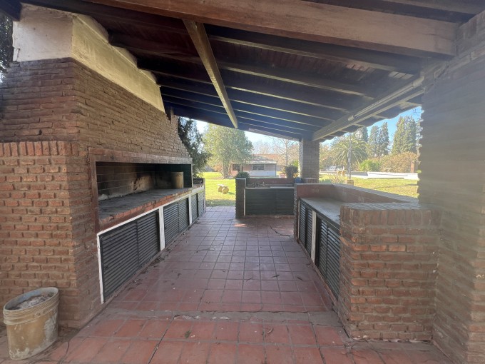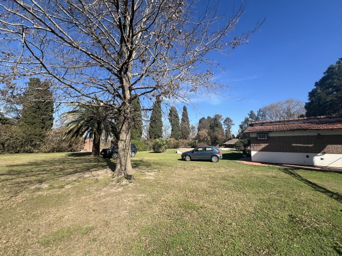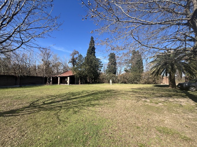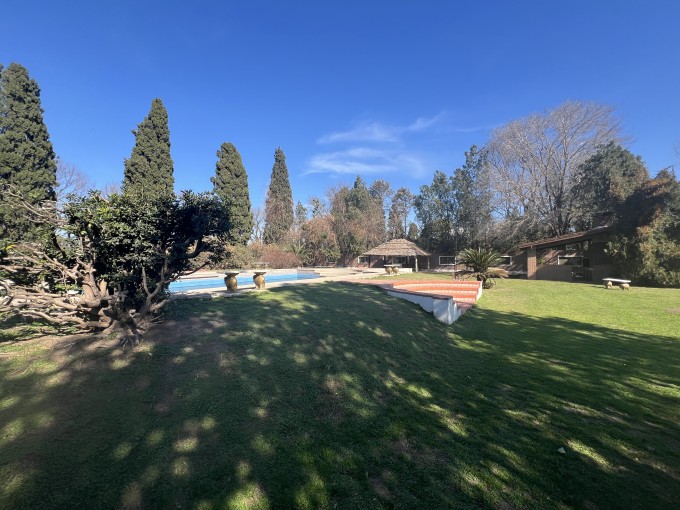 Gran jardín de 3000 mts2, vegetación y arboleda. Pileta de material. Quincho abierto con parrillero. Casa 2 dorm, cocina, living comedor y baño instalado. 2º vivienda estilo deposito/vestuarios.