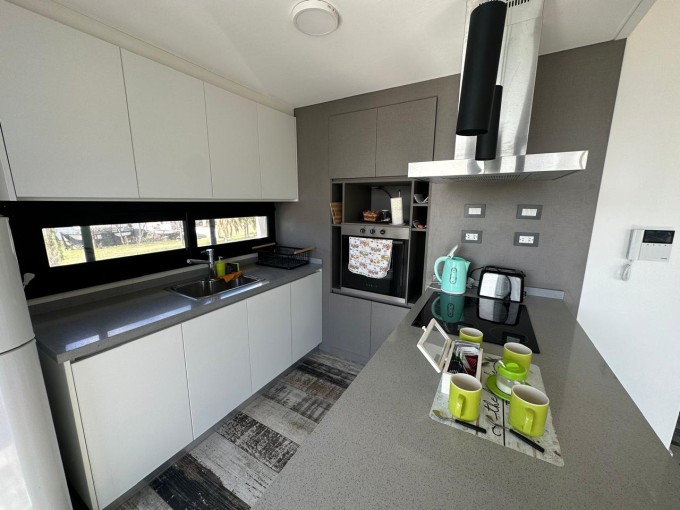 Hermoso departamento de categoría ubicado frente al paseo costanero. Segundo piso. Al frente. Superficie 63 m2. Cuenta con 1 dormitorio con placard, ante baño/baño completo, cocina con barra/extractor, amplio living/comedor integrado, cochera y balcón al frente con hermosa vista a la costanera. Pisos de porcelanato. Muy luminoso. Construcción nueva. Hermosa zona.