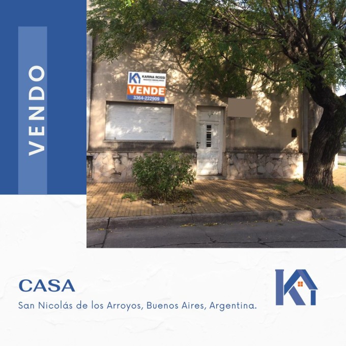 ¡CASA EN VENTA! San Nicolás de los Arroyos. Ubicación: Las Heras y España. Cuenta con: - 2 dormitorios. - 1 baño. - Cocina- comedor. - Living. - Patio. - Espacio para un vehiculo.