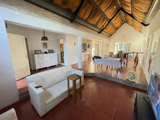 Casa de un dormitorio, amplio living comedor, cocina, un baño, lavadero y enorme fondo con piscina plástica.