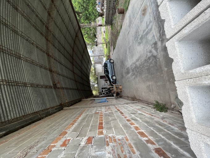 -una construcción con espacio de guardado y baño.