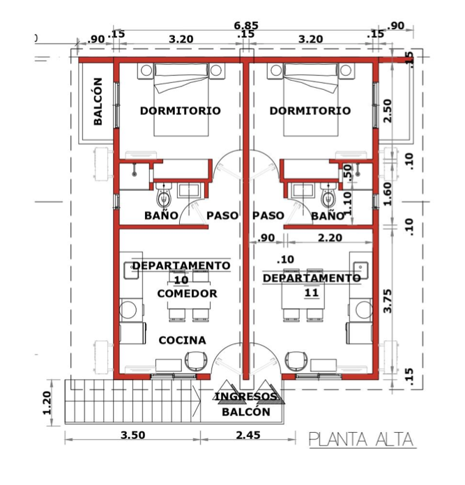 En Planta Alta c/balcón - Departamento 10 - VENDIDO / Departamento 11 - VENDIDO