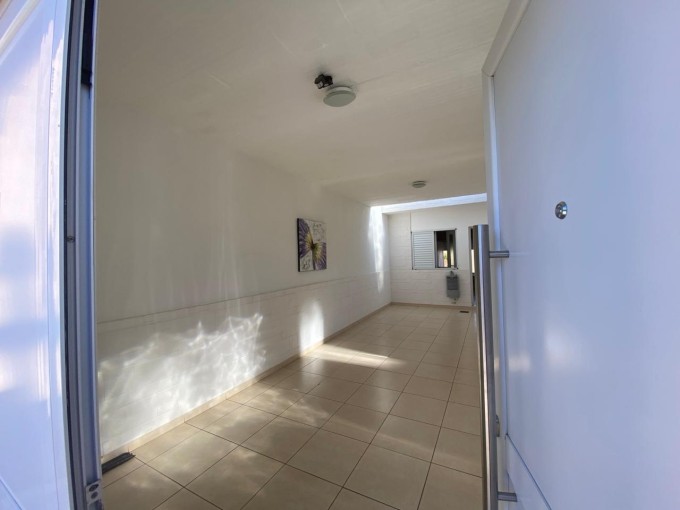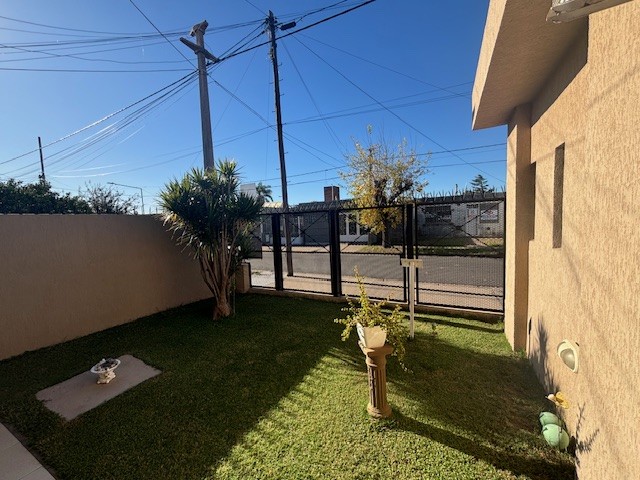 Se accede desde la calle por un portón que da a la cochera. Sobre un lateral hay una puerta de salida al espacio verde del frente protegido por una reja sobre la línea municipal. Al final del mismo la puerta principal, con iluminación natural que penetra por un traga luz en el techo, brinda entrada al living con importante ventanal al patio. Se comunica con la cocina comedor, espacio amplio y bien iluminado. Una puerta balcón lateral da salida al patio. Un pasillo distribuidor al frente lleva a la zona privada.