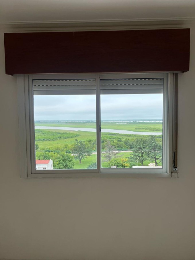 Departamento ubicado al contrafrente con vista al Río. 1 dormit, comedor con Balcón al río, cocina con salida al balcón, con bañera, y cochera semicubierta c/portón automático.