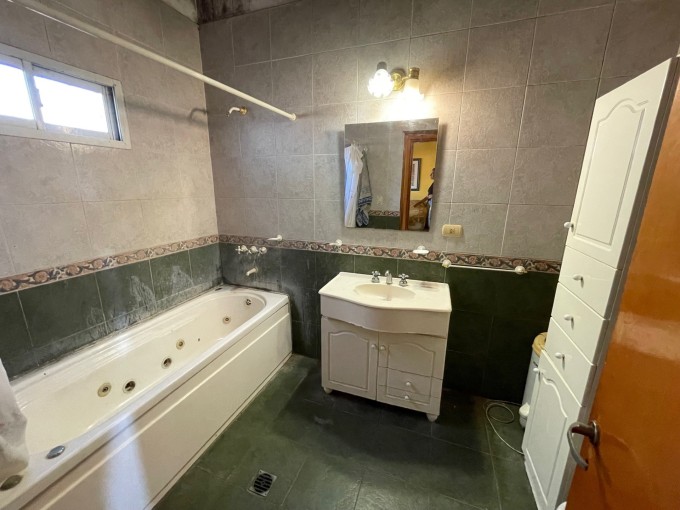 Linda casa de un dormitorio, amplia cocina comedor, dos baños, lavadero y patio verde con piscina de material.-