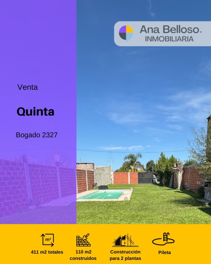 La propiedad cuenta con: un baño completo, construcción para 2 plantas y pileta.
