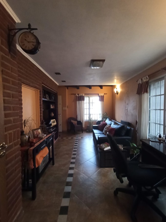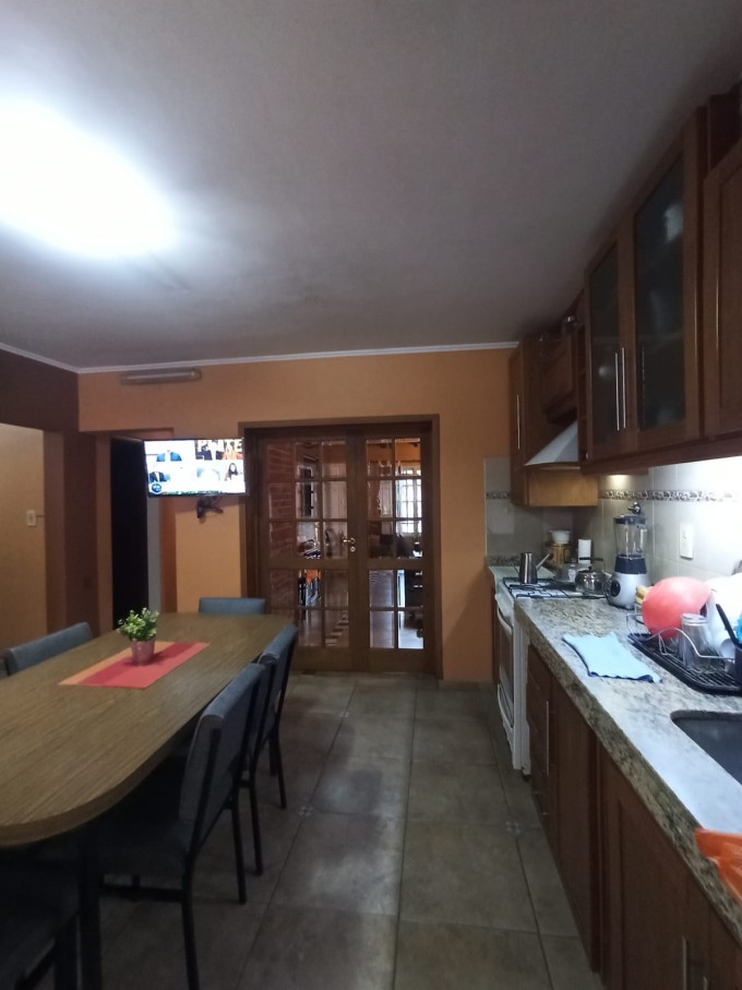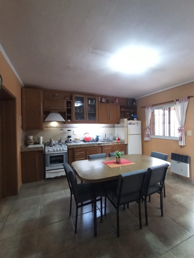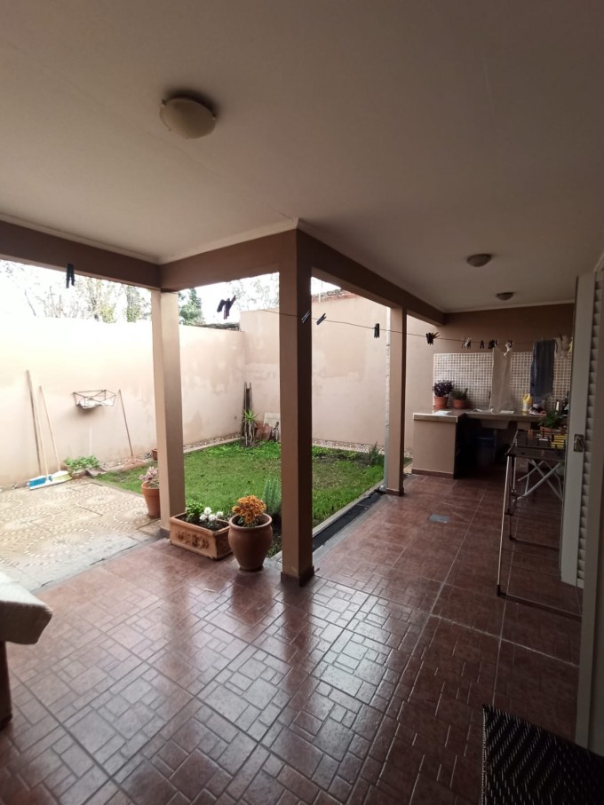 Ingreso vehicular para varios autos, living comedor, cocina comedor con muebles en roble, dos habitaciones con placard, baño completo, distribuidor con placard, galería techada con lavadero, cuarto de guardado con baño y entre piso, Patio seco y espacio con verde.