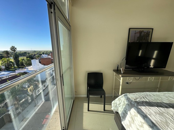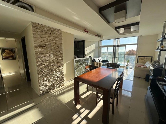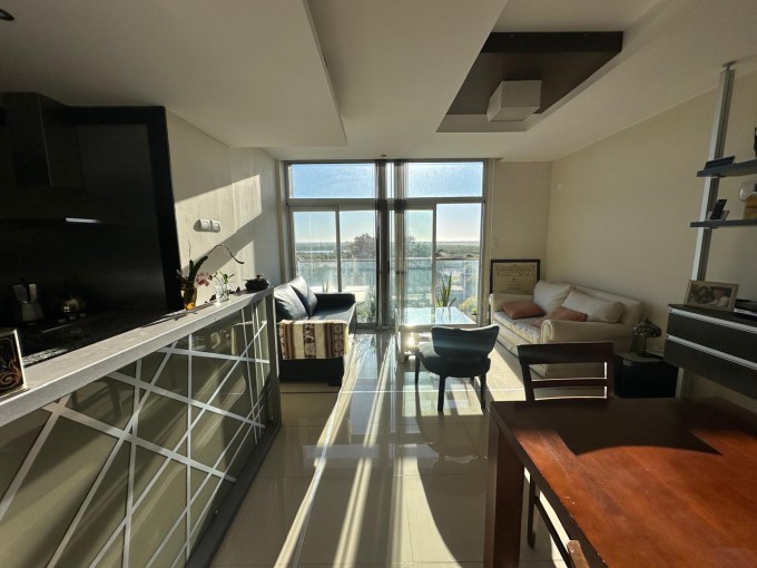 Departamento premium en venta. Cuarto piso al frente. Superficie cubierta 83 m2, total 120.24 m2. Cuenta con 2 dormitorios con placard (1 en suite), 2 baños completos, lavadero, doble cochera (acceso independiente) cocina completa con barra y amplio living/comedor con hermosa vista al río. Pisos de porcelanato, caldera dual y muebles jhonson. Impecable. Una de las mejores zonas de San Nicolás.