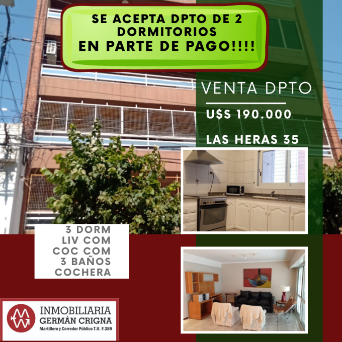 Dpto 3 dorm, acepta dpto 2 dorm parte de pago