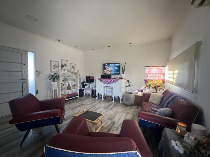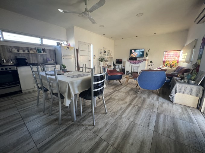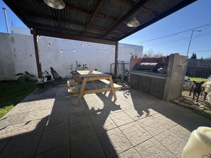 Lote esquina de 28.35*11mts, cubiertos aprox 68mts2. Propiedad de 1 dorm, living cocina comedor de ingreso, baño y dormitorio. Gran jardin con habitacion de deposito.