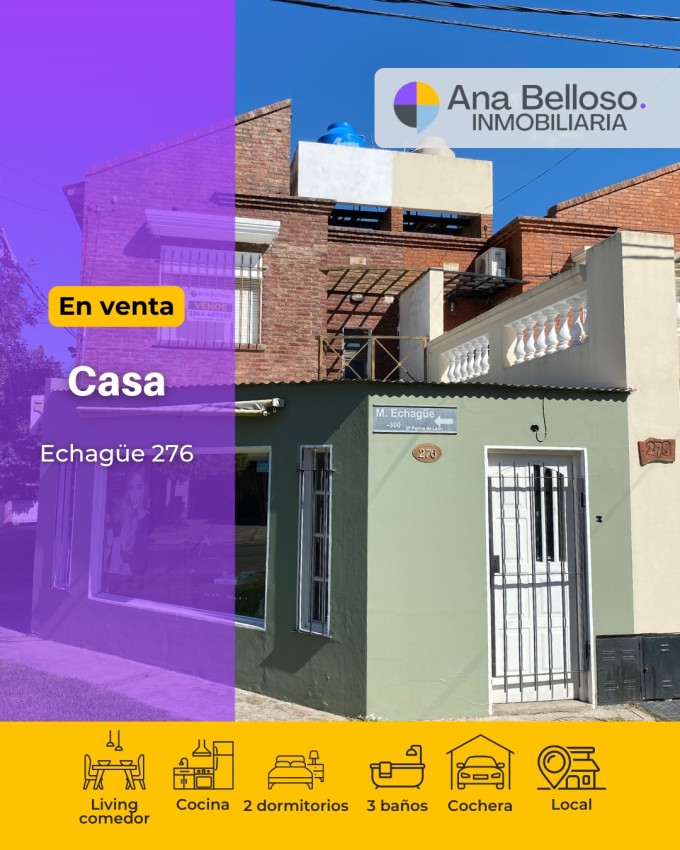 ¡OPORTUNIDAD! Casa en esquina con local en venta. 2/3 Dormitorios, Local con entrada independiente, Cocina, amplio living comedor, galería cerrada, Garaje semi-techado, tres baños.