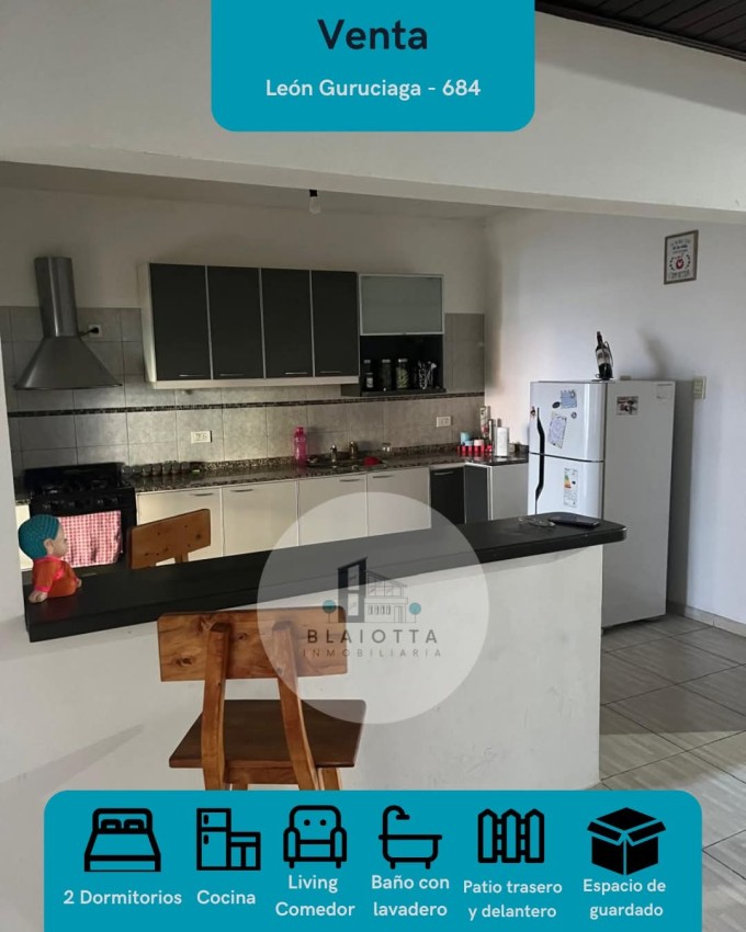 La propiedad posee 2 dormitorios (con opción a 3), cocina, living-comedor, baño con lavadero, patio trasero y delantero y espacio de guardado.