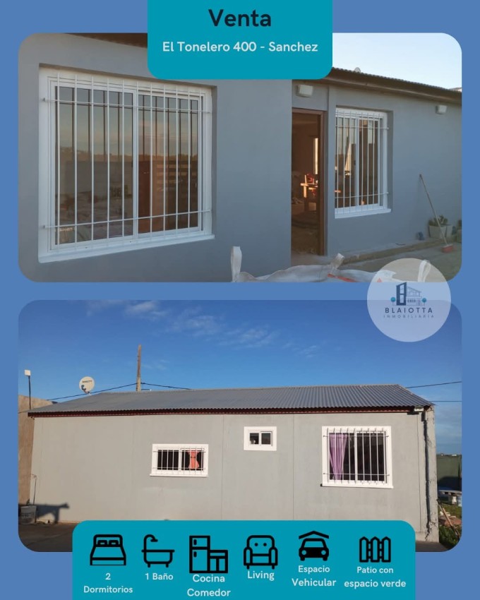 Dirección: El Tonelero al 400 La propiedad posee 2 dormitorios, baño, cocina-comedor, living, espacio vehicular y patio con espacio verde. Se acepta vehículo en parte de pago.