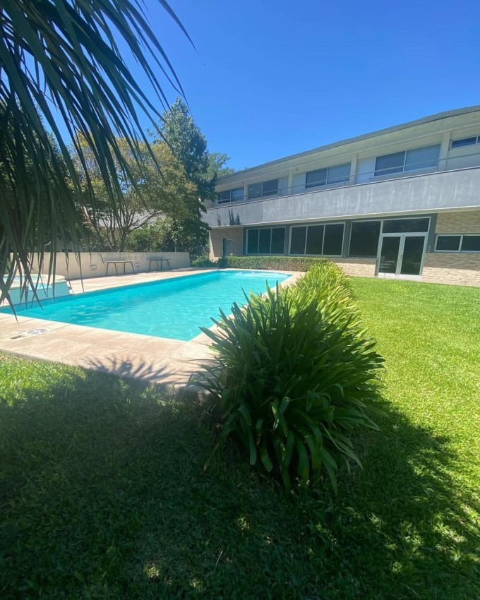 En planta alta dispone de cuatro dormitorios, cada uno con baño privado, aberturas de aluminio línea Módena, instalaciones eléctricas independientes, pisos tipo parquet brasileño, cielorrasos de madera lustrada, termotanque solar de 200 litros, termotanque a gas y equipos de aire acondicionado frío/calor en funcionamiento.
