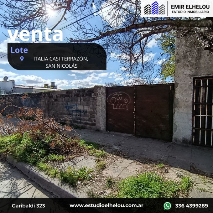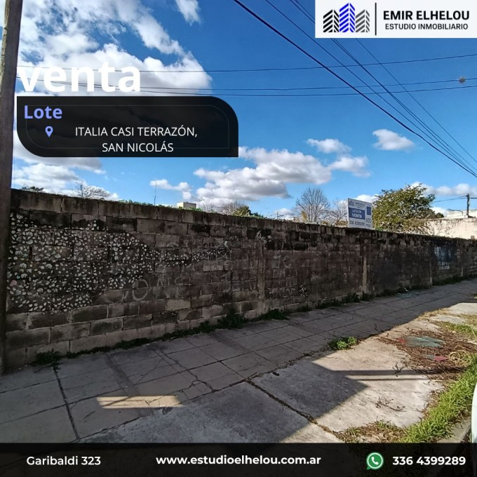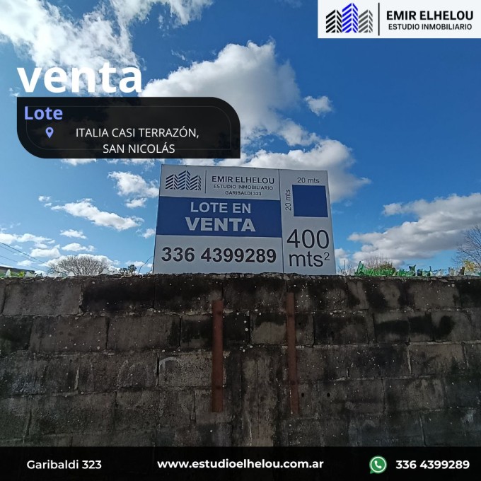 Excelente Lote de 400 mt² ubicado en calle Italia casi esquina Terrazón. Sus medidas son 20 mts de frente x 20 mts de fondo. Ideal para inversores. Se encuentra tapialado.