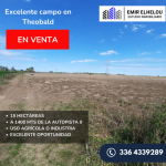 Campo de 15 has en Theobald, a 1400 mts de la Autopista 9. Tiene 180 mts de frente por y 830 mts de fondo. Muy buenos rindes. Ideal inversión